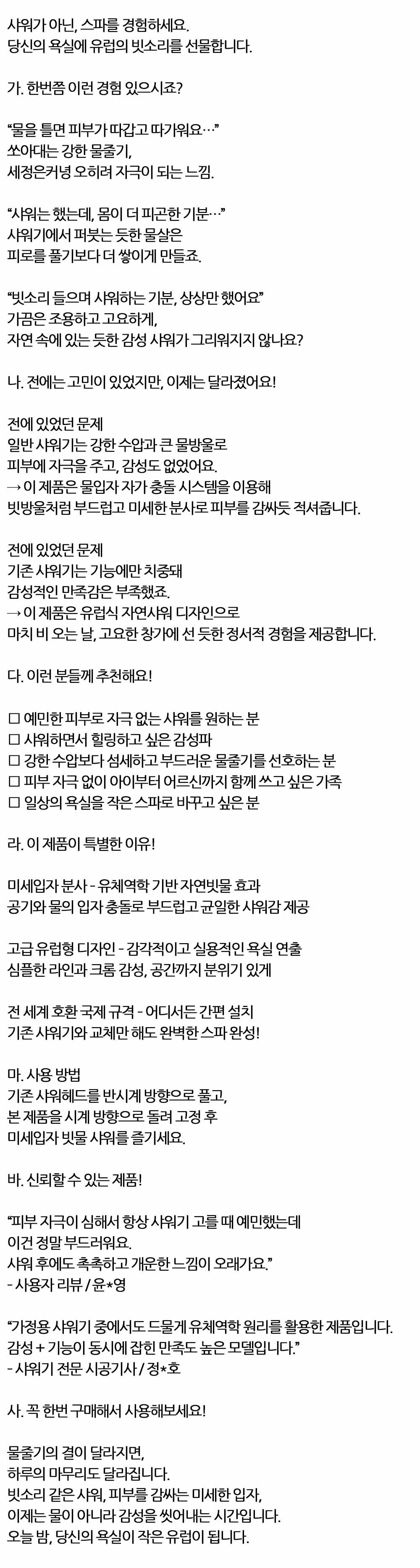 미세입자 분사 자연빗물 느낌 고급 유럽형 샤워헤드