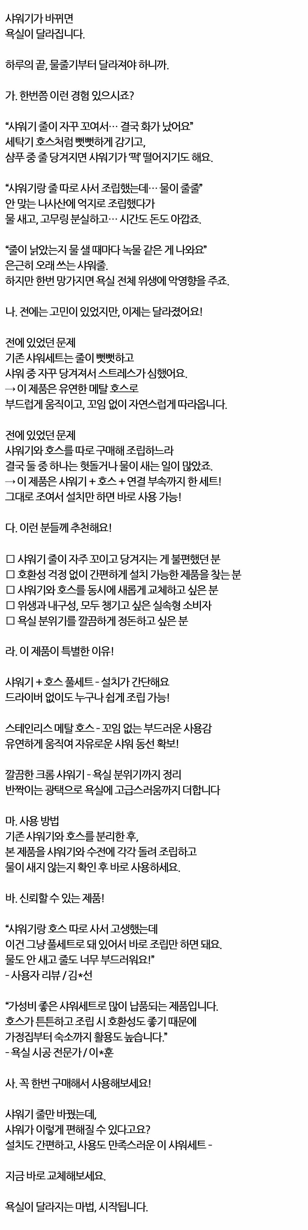 설치도 간편하고 사용도 만족스러운 샤워헤드세트 1M