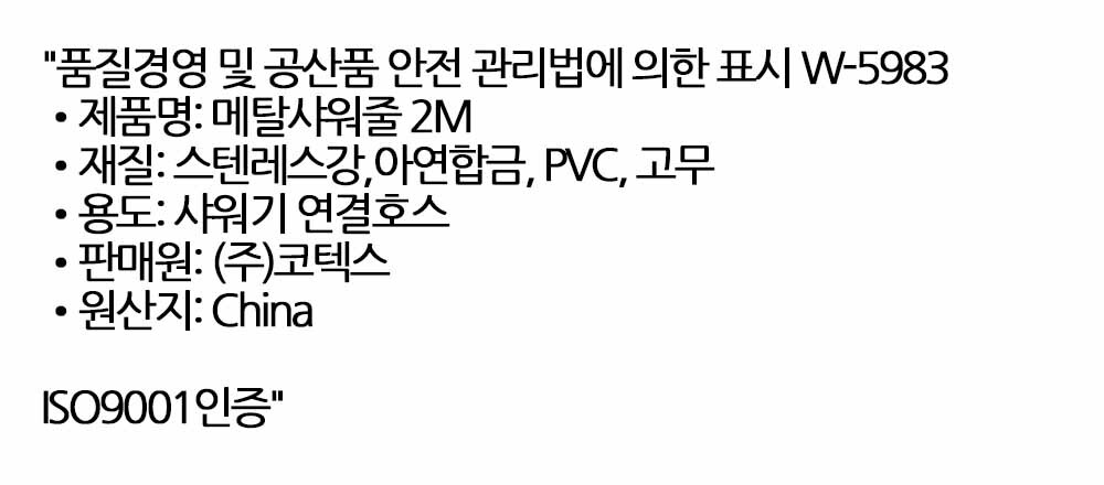 튼튼 오래가는 줄꼬임없는 유연한 메탈 샤워호스 2M