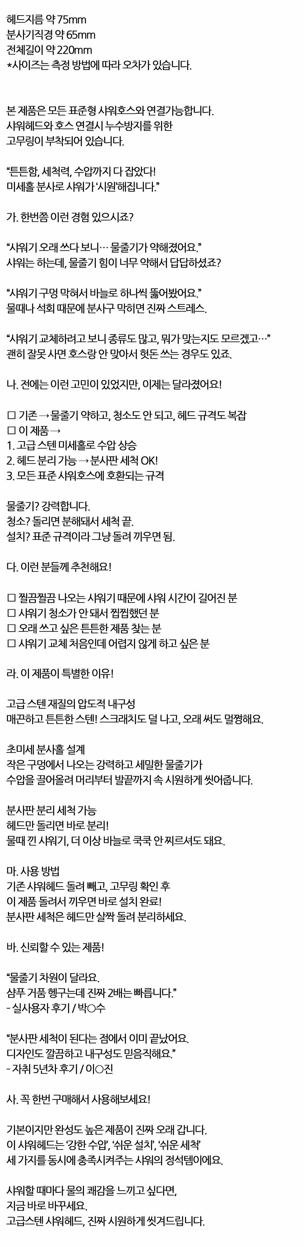 샤워할때마다 물의 쾌감을 느끼고 싶다면 샤워헤드 대