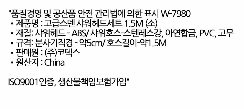 미세홀 분사로 수압상승 효과 샤워헤드 호스세트 1.5M