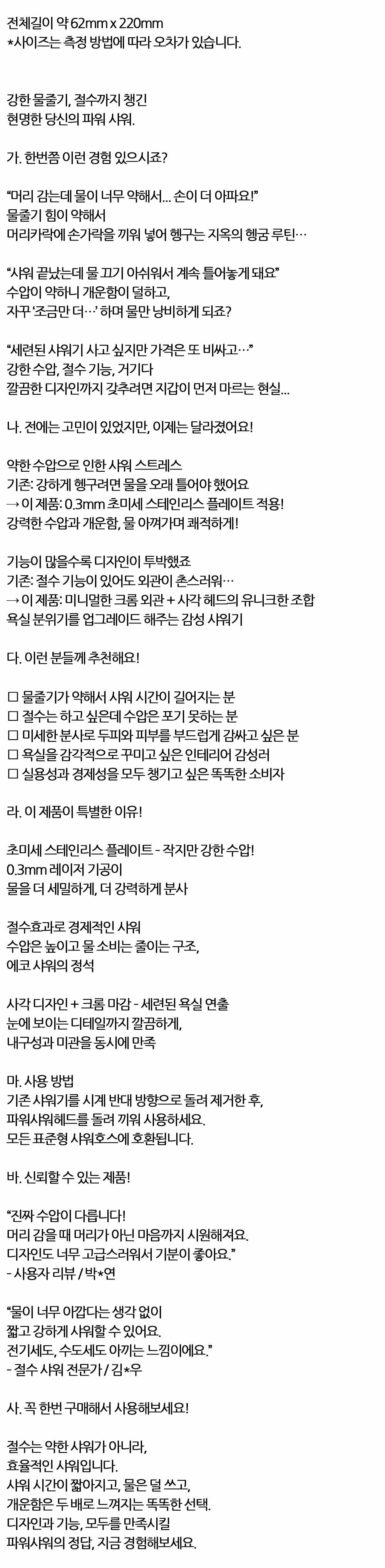 강한 수압 절수효과 세련된 외형 파워 욕실 샤워헤드