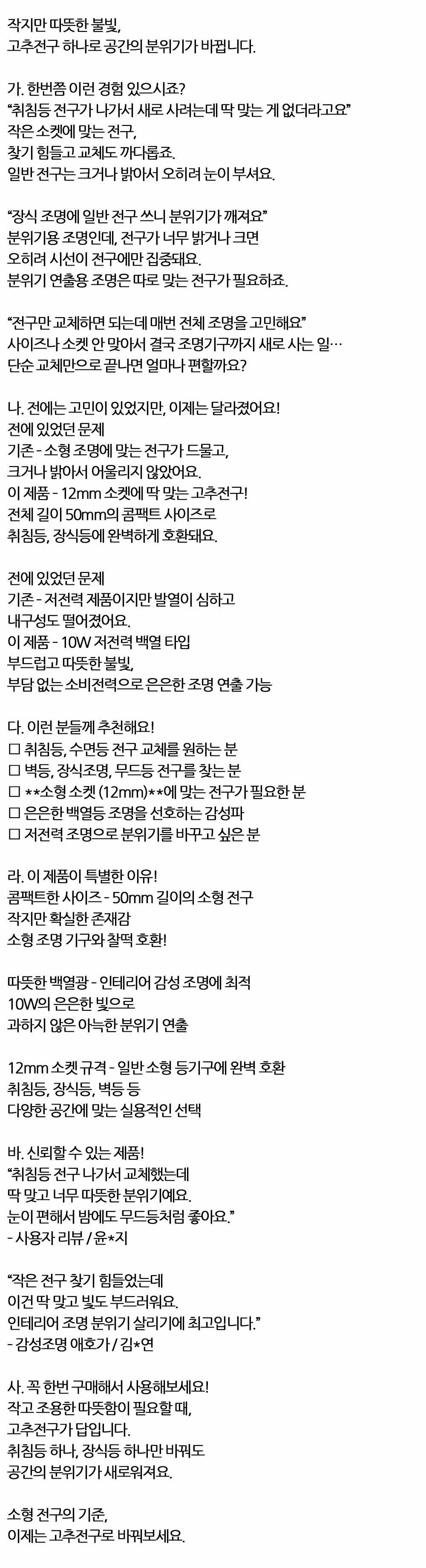 작지만 따뜻한 불빛 공간 분위기가 바뀝니다 전구 3입
