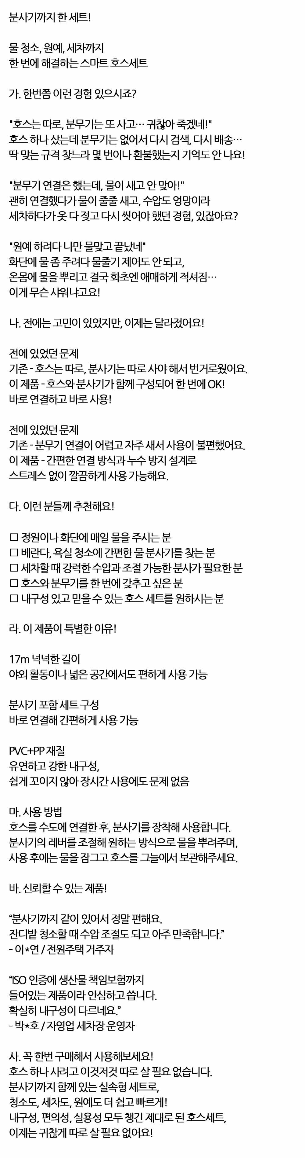 물청소 원예 세차까지 한 번에 다용도 호스세트 20호