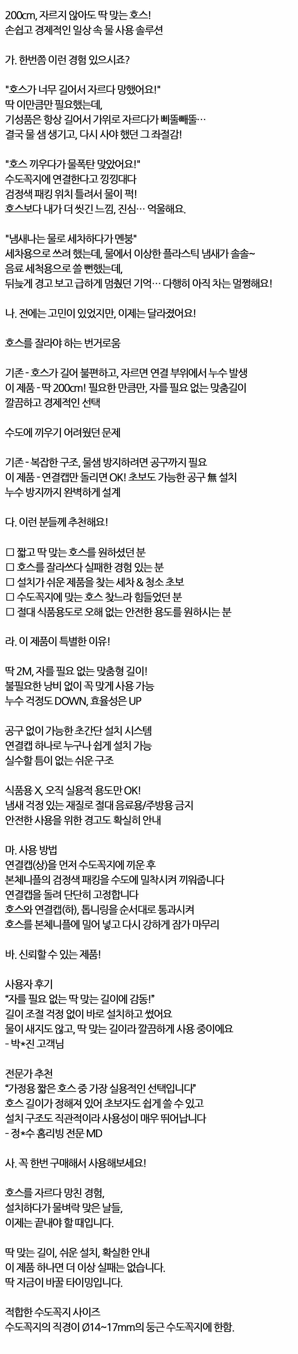 자르지 않아도 딱 맞는 간편한 설치 맞춤형호스 200cm