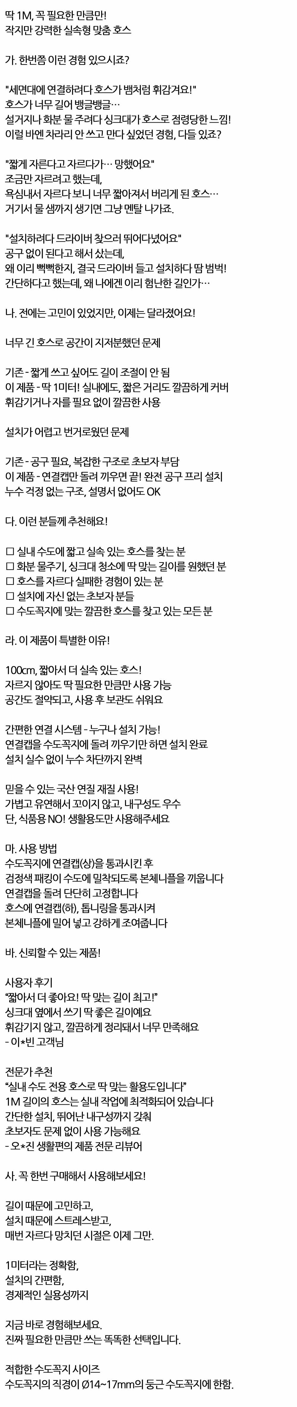 자르지 않아도 필요한 만큼만 사용 맞춤형호스 100cm