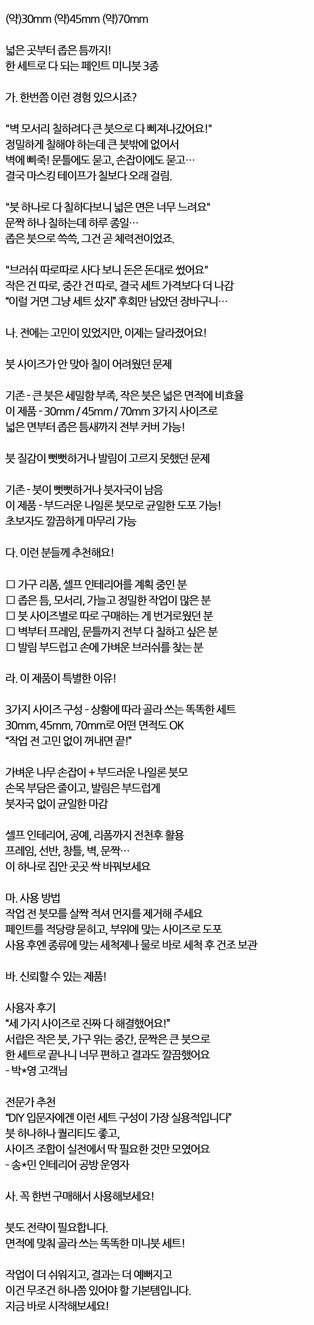 넓은곳부터 좁은틈까지 페인트 브러쉬 미니붓 3종세트