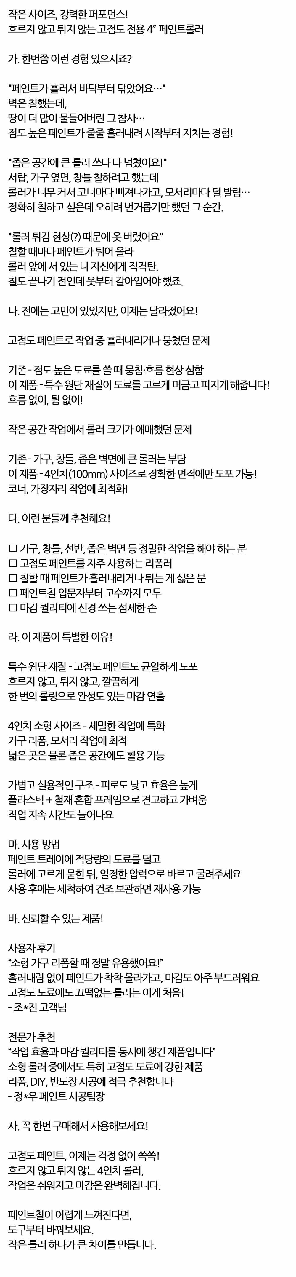 흐르지 않고 튀지 않는 고점도 전용 페인트롤러 100mm