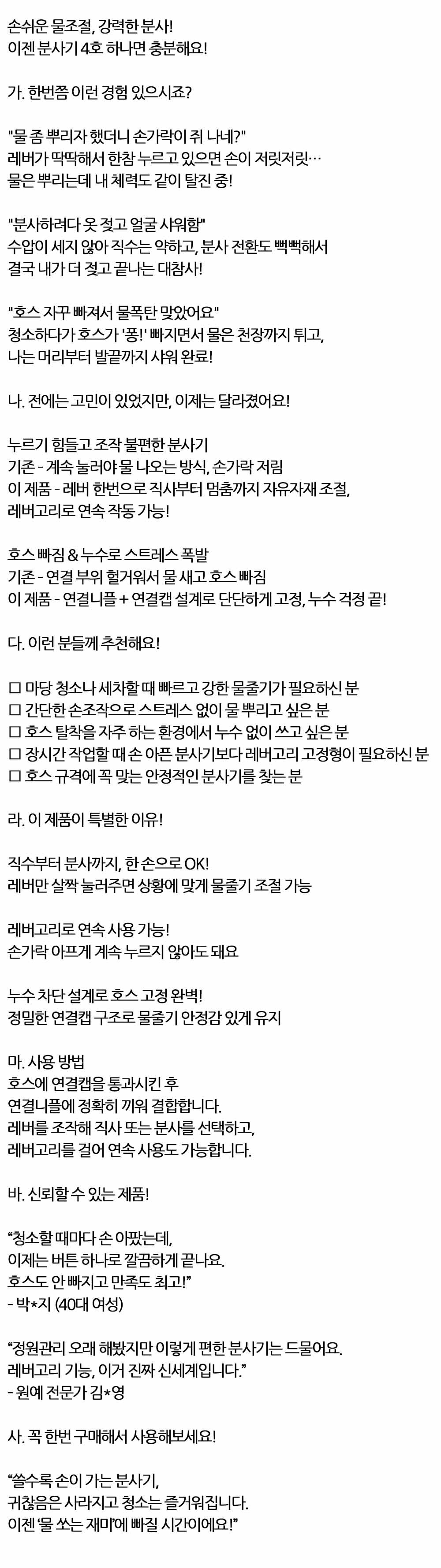 레버한번으로 직사부터 멈춤까지 자유조절 분사기 4호