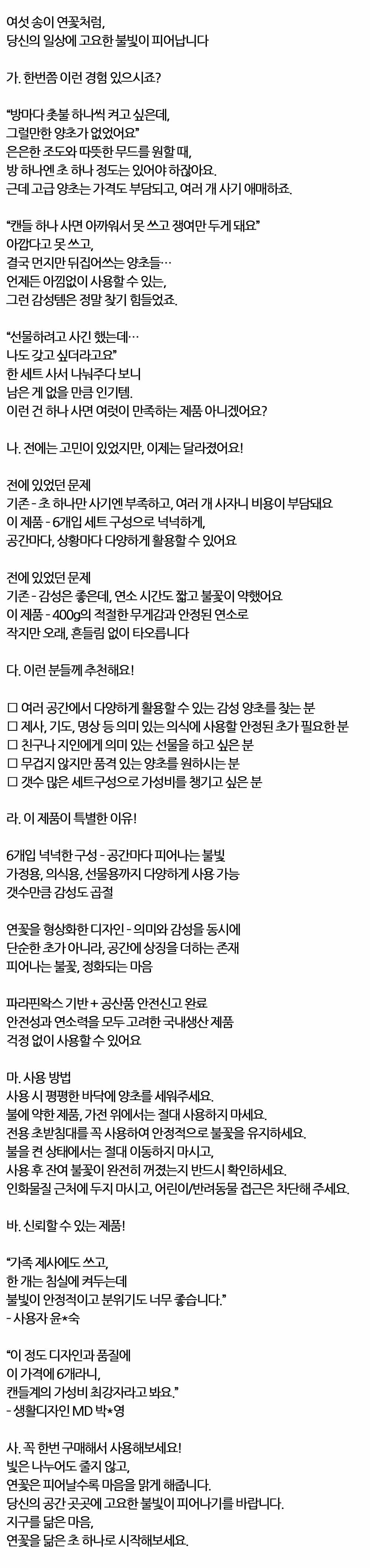 연꽃처럼 고요한 불빛이 피어납니다 양초 400g 6입