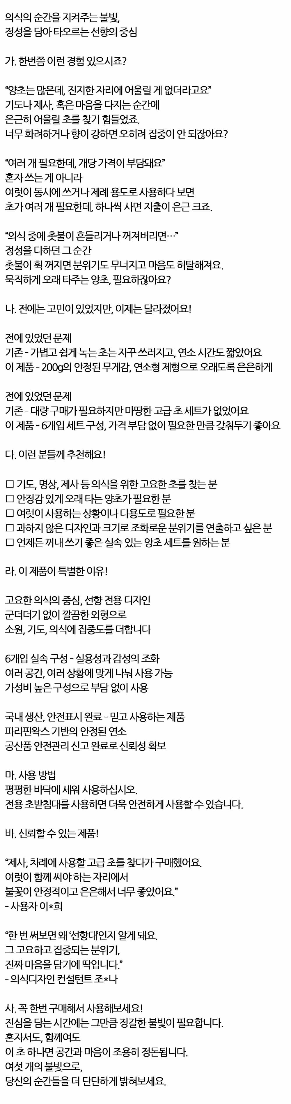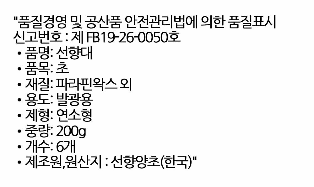 기도 명상 제사 의식의 순간 지켜주는 양초 200g 6입