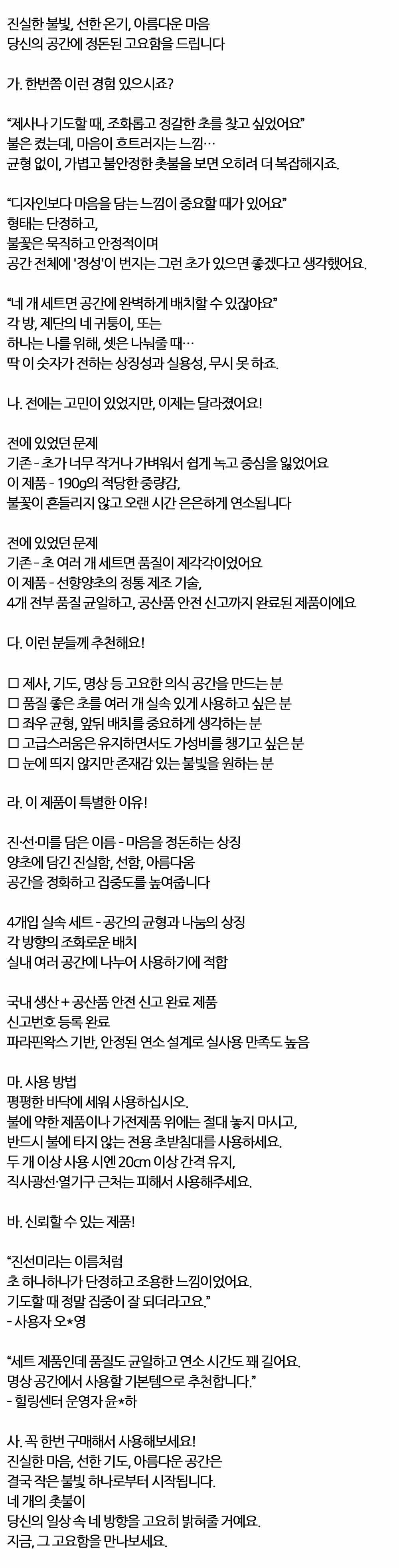 진실한 불빛 선한 온기 아름다운 마음 양초 190g 4입