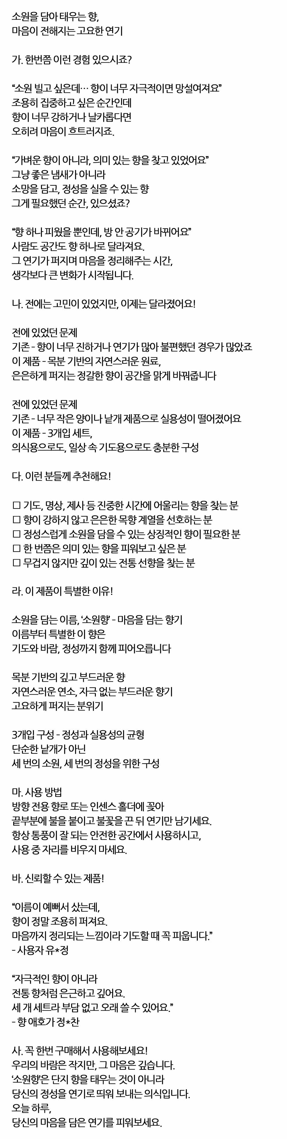 마음이 전해지는 연기 소원을 태우는 소원향 114g 3입