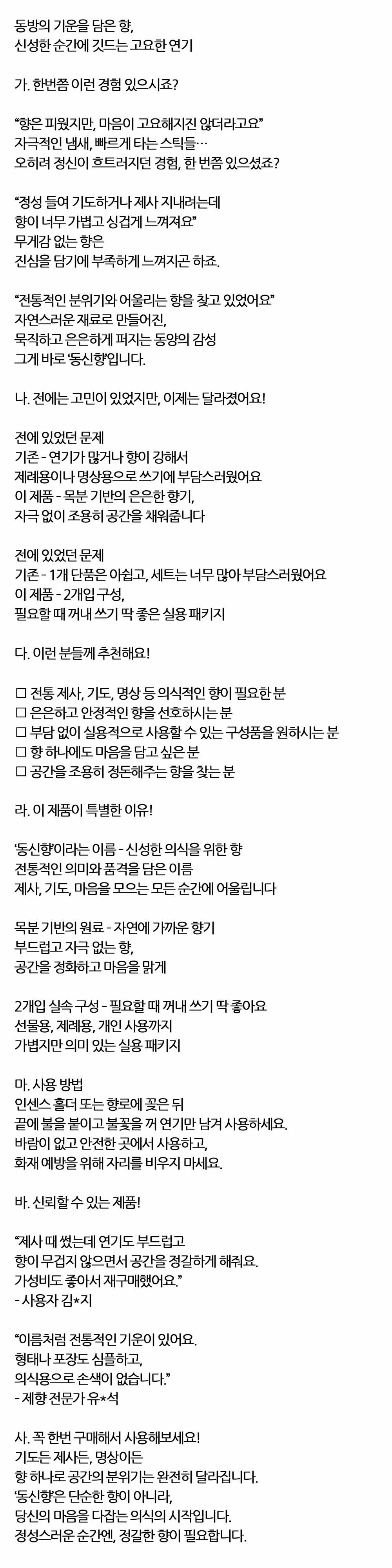신성한 순간에 깃드는 고요한 연기 동신향 96g 2입
