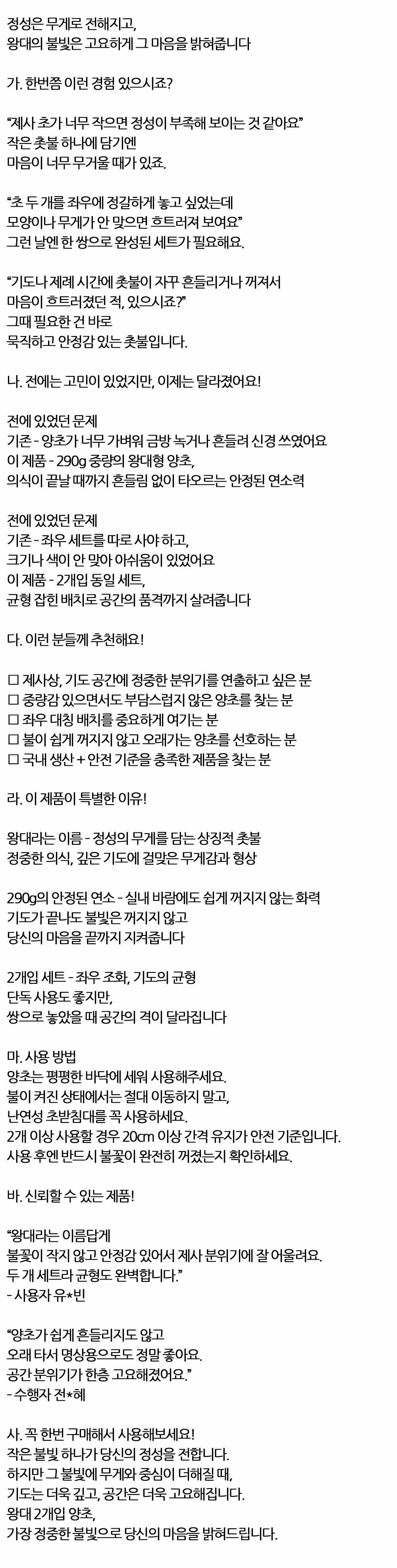 불빛은 고요하게 그 마음을 밝혀줍니다 양초 290g 2입