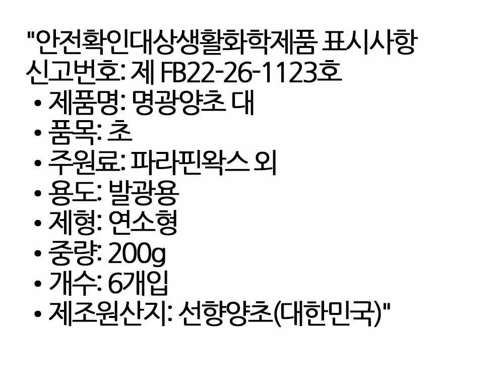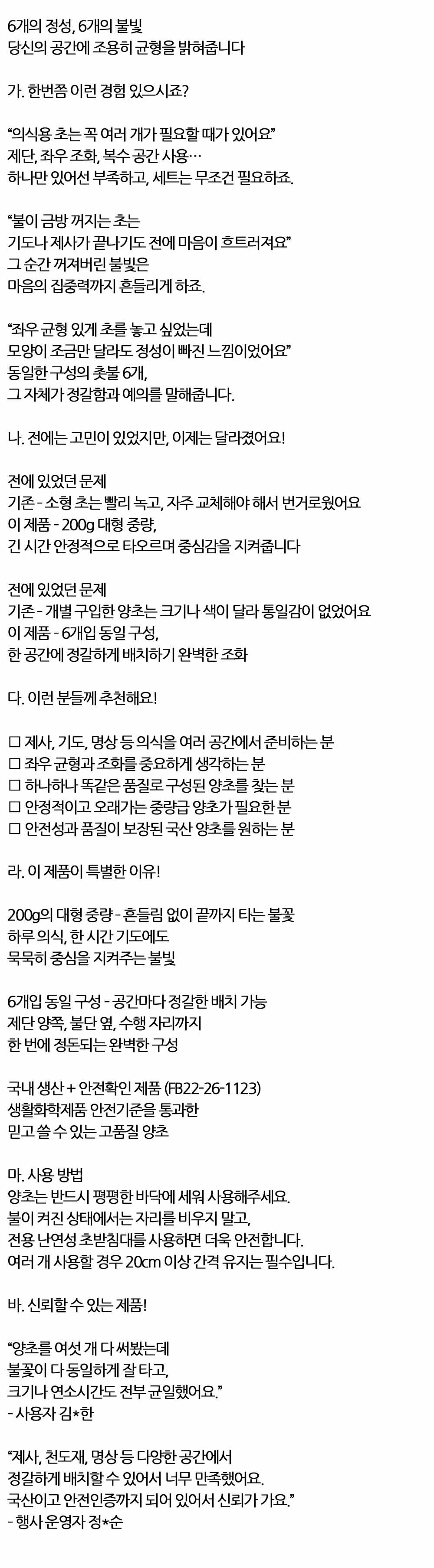 불빛이 필요한 의식공간에 어울리는 양초 대 200g 6입