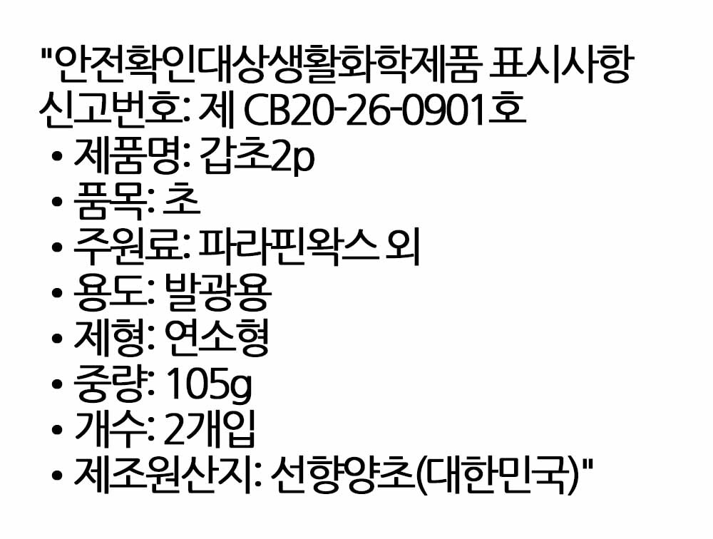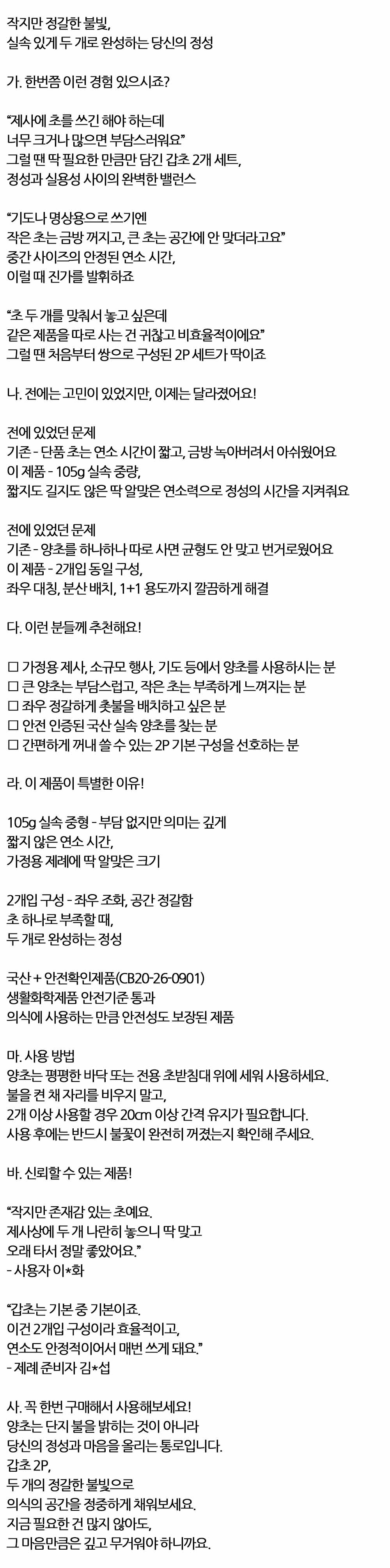 전통의 기본을 지키는 기도 의식용 민속양초 105g 2입