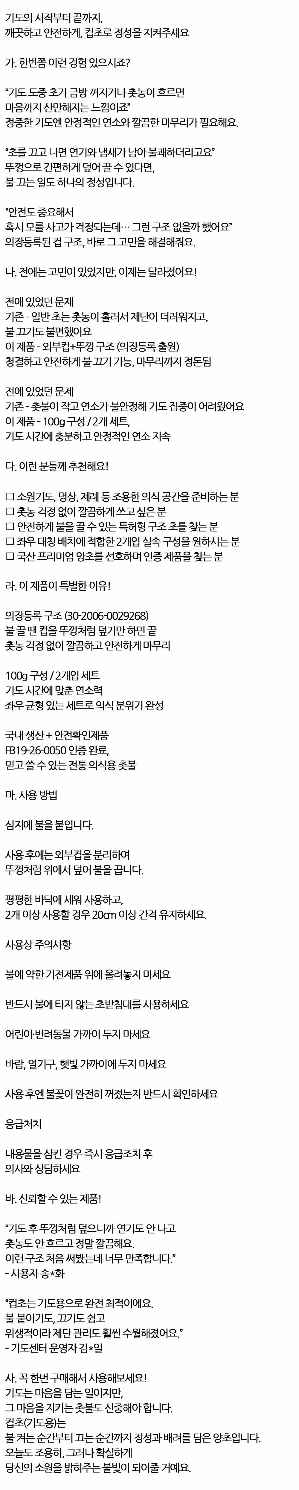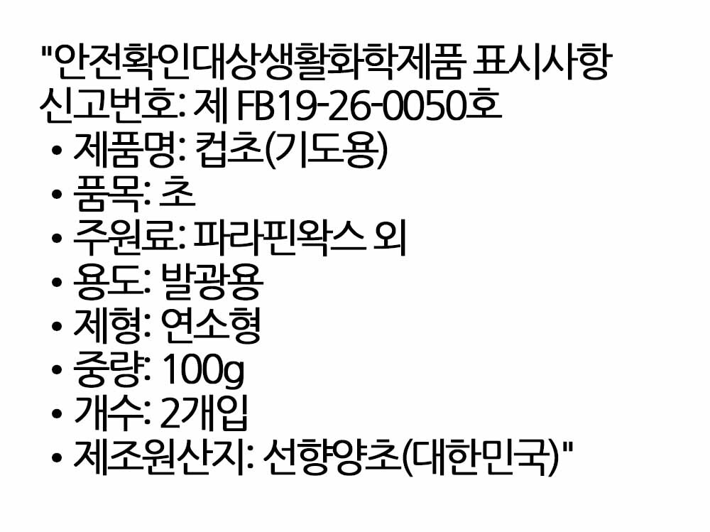 실용성과 안전성을 동시에 갖춘 기도 컵양초 100g 2입