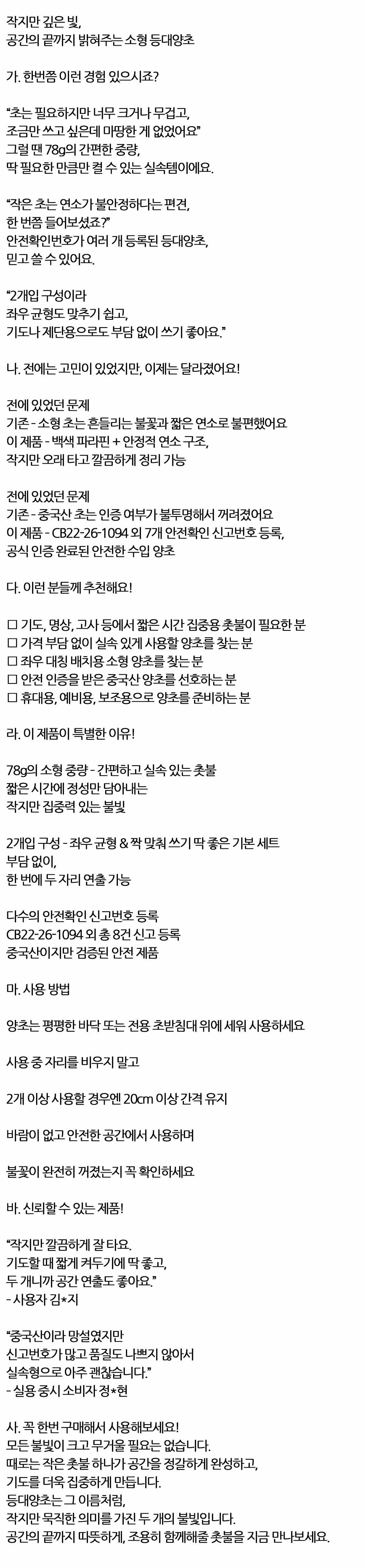 공간의 끝까지 밝혀주는 소형 등대양초 78g 2입
