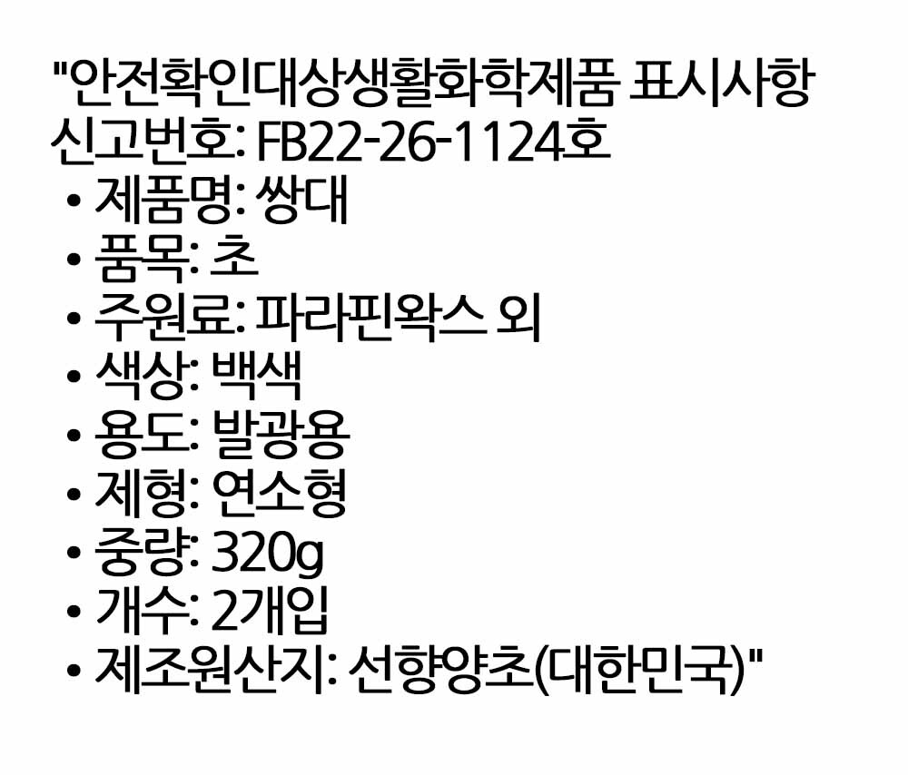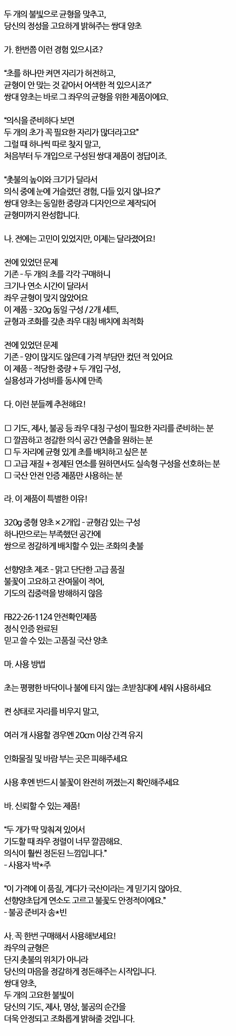 균형과 조화를 갖춘 좌우 대칭 배치 양초 320g 2입