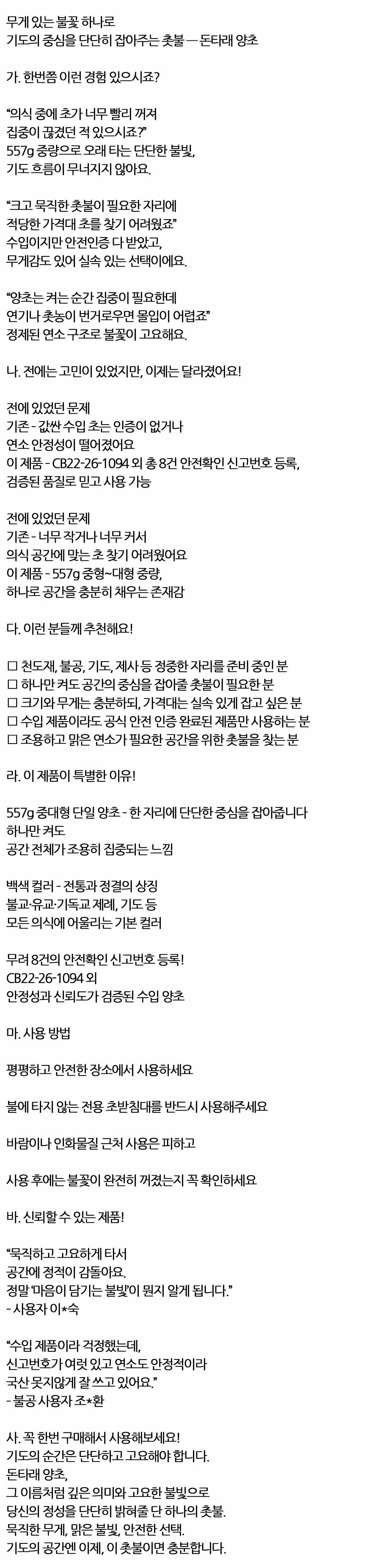 기도의 중심을 단단히 잡아주는 촛불 양초 557g 1입