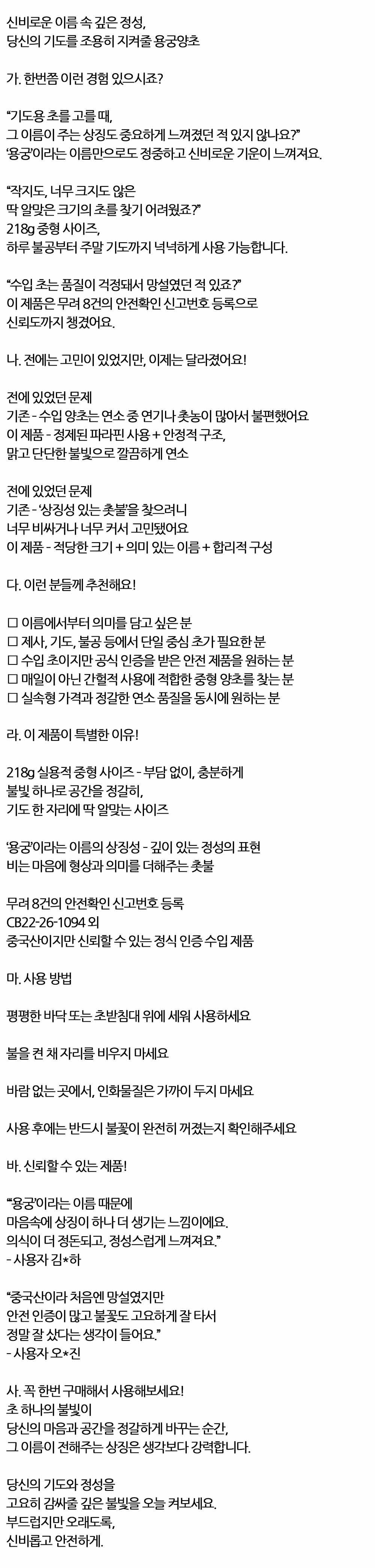 신비로운 이름 속 깊은 정성 기복 평안 양초 218g 1입