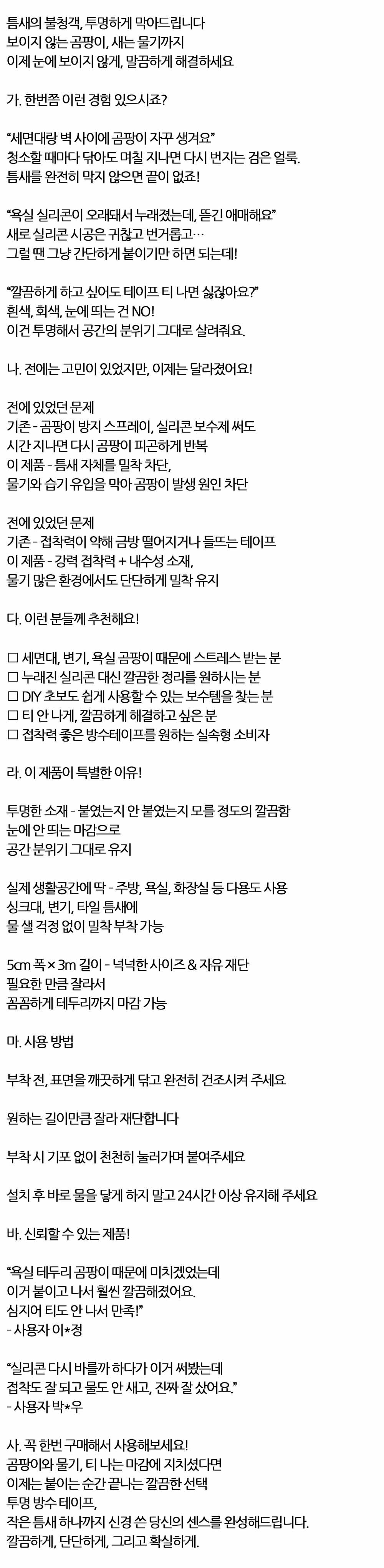 보이지 않는 곰팡이 새는 물기 투명 방수테이프 3m
