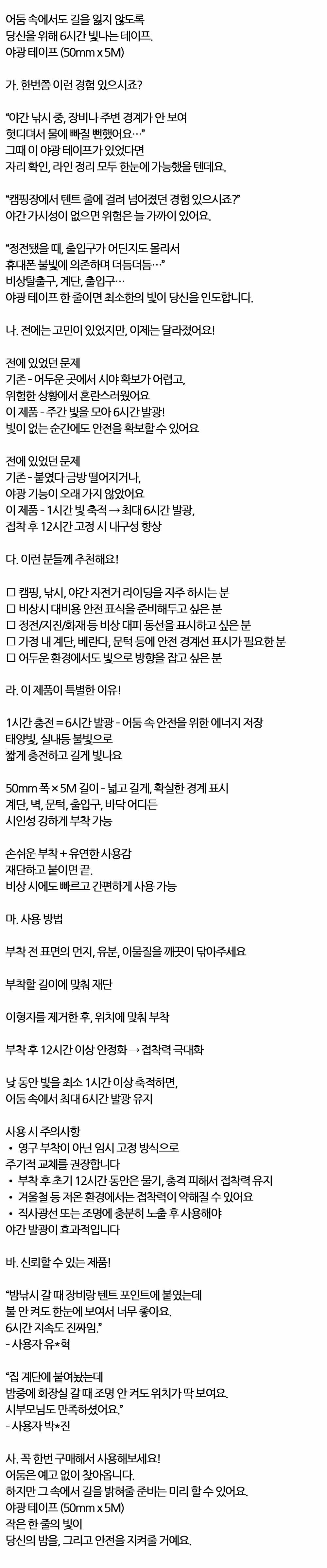 어둠속에서 길을 잃지않도록 6시간 빛나는 야광테이프