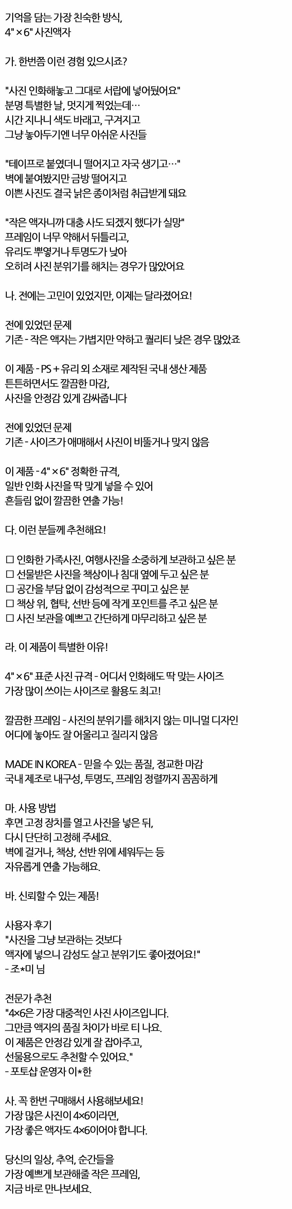 일상 속 기록 소중히 보관해주는 감성 사진액자 4 X 6