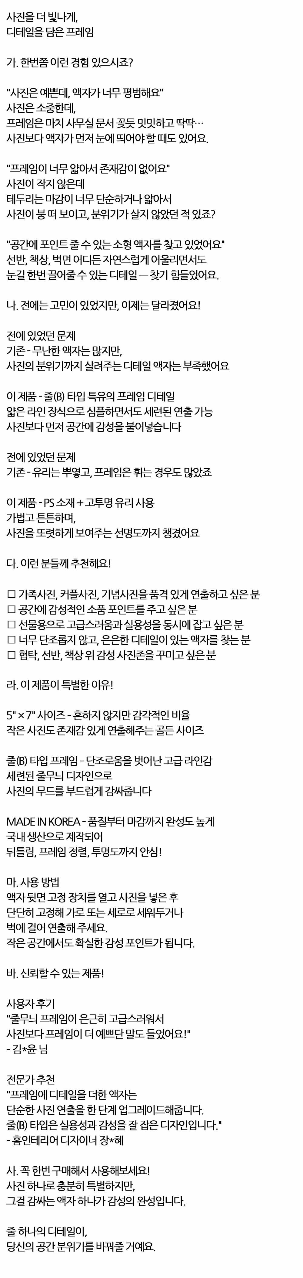 사진을 빛나게 디테일을 담은 프레임 사진액자 5 X 7