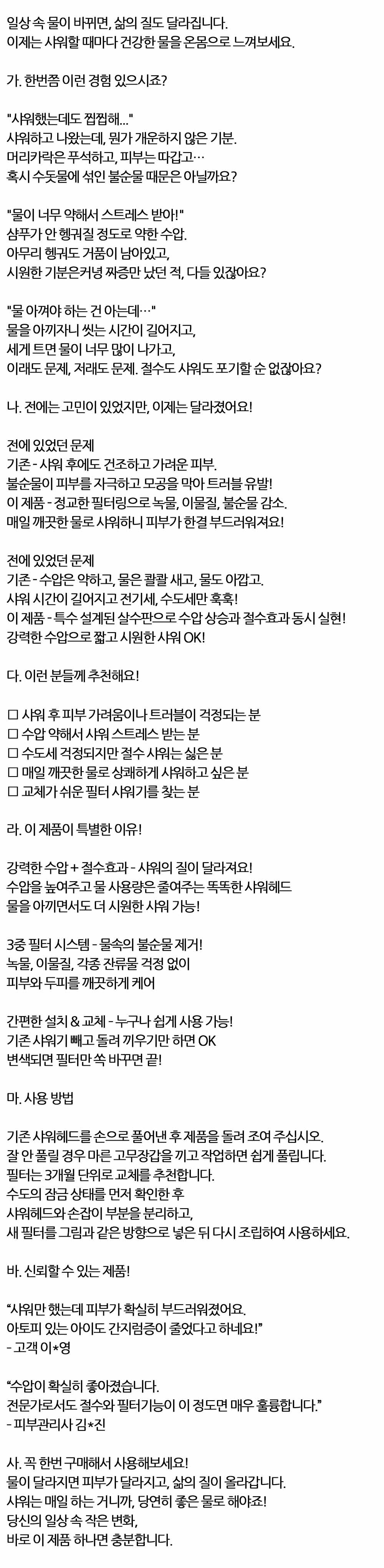 물이 바뀌면 삶의 질도 달라집니다 샤워헤드필터 블랙