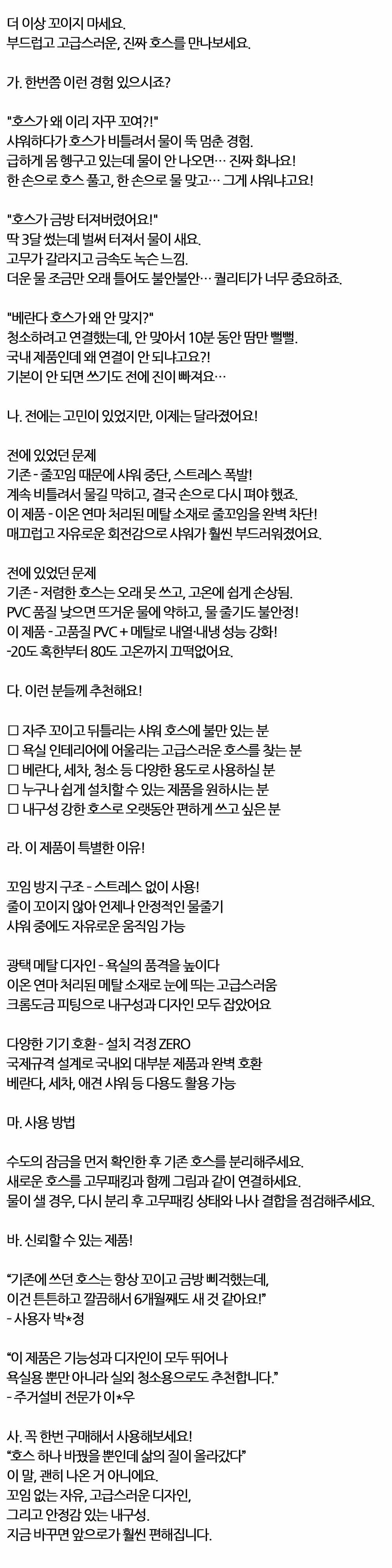 줄이 꼬이지않아 언제나 안정적인 메탈 샤워호스 1.5M