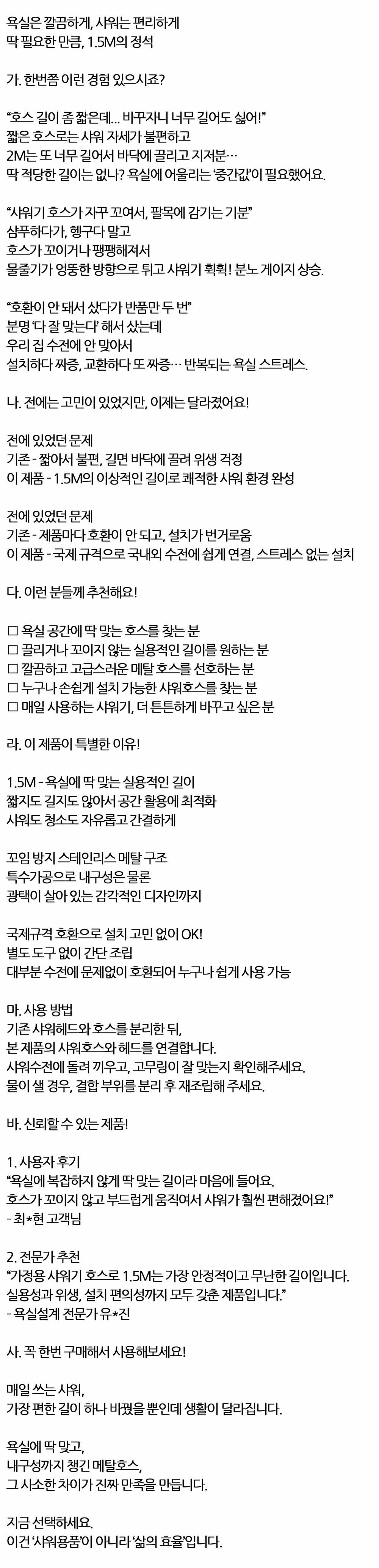샤워 편리하게 딱 필요한만큼 메탈 샤워호스세트 1.5M