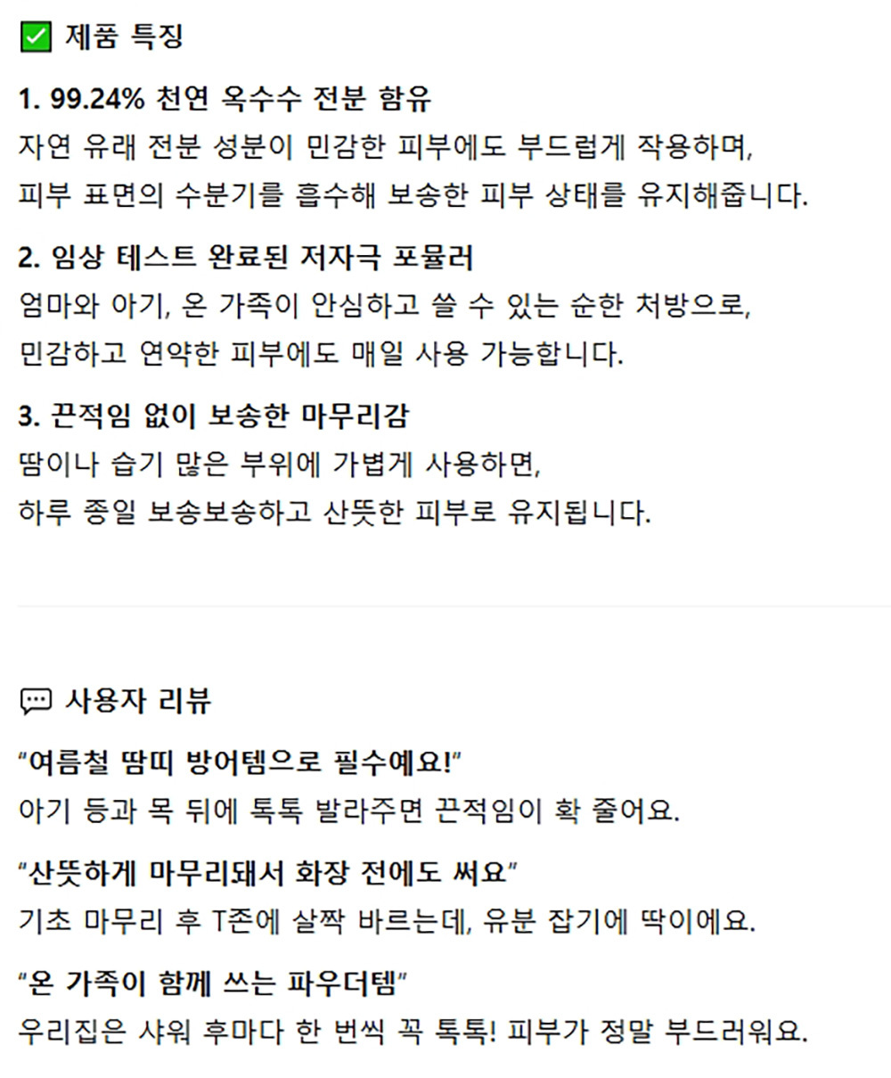 피부 표면의 수분기 흡수 보송보송 베이비파우더 200g