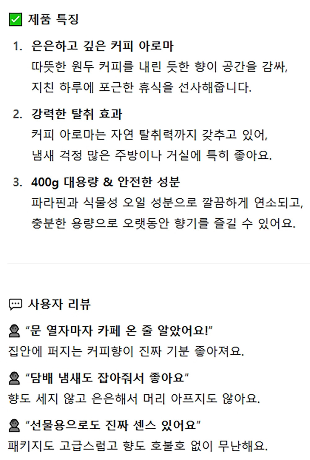 따뜻한 원두 커피를 내린 듯한 향 커피향 향초 400g