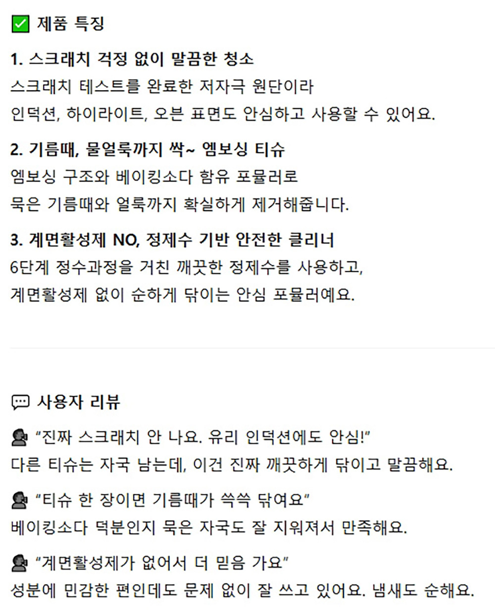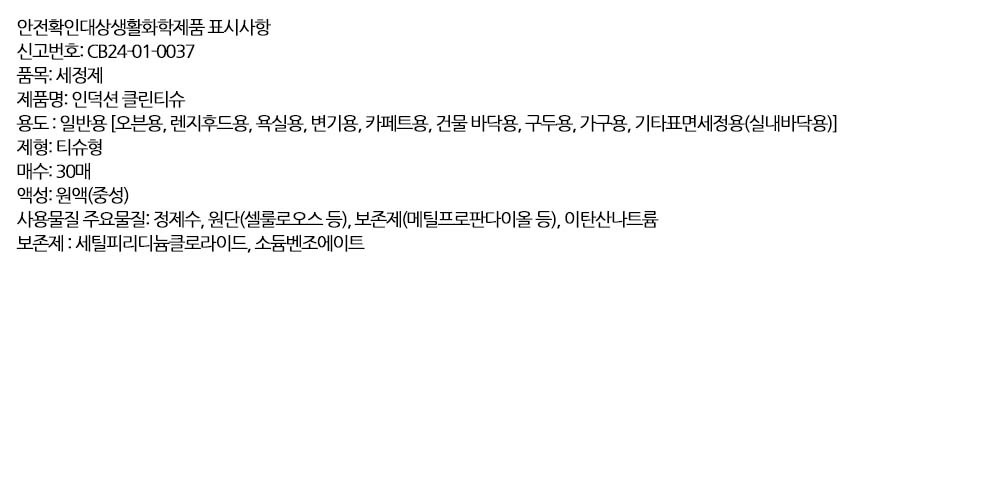 스크래치 걱정없는 말끔한 청소 인덕션 전용티슈 30매