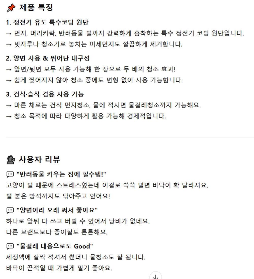 정전기 유도원단 강력 먼지 흡착 정전기청소포 30매