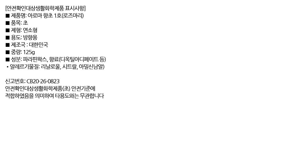 머리를 맑게 해주는 허브 계열의 로즈마리 향초 125g