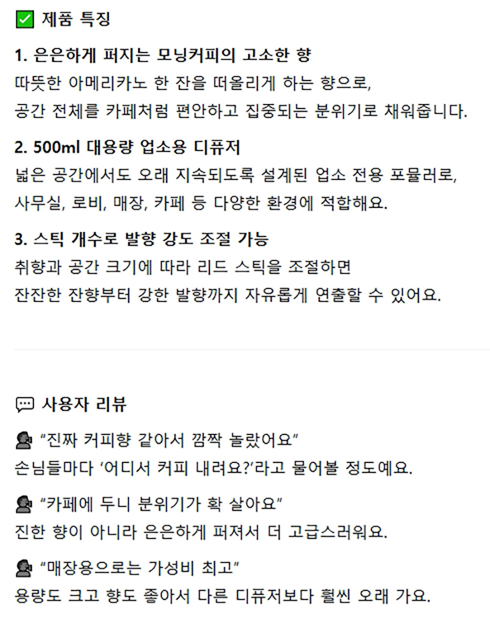 따뜻한 아메리카노 한 잔 떠올리는 커피 디퓨저 500ml