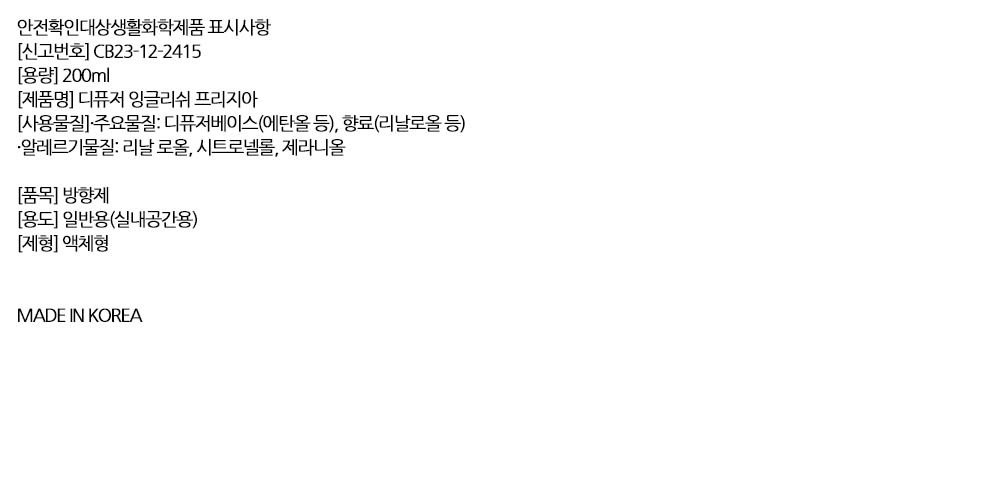 이른 아침의 정원을 담은 프리지아향 디퓨저 200ml
