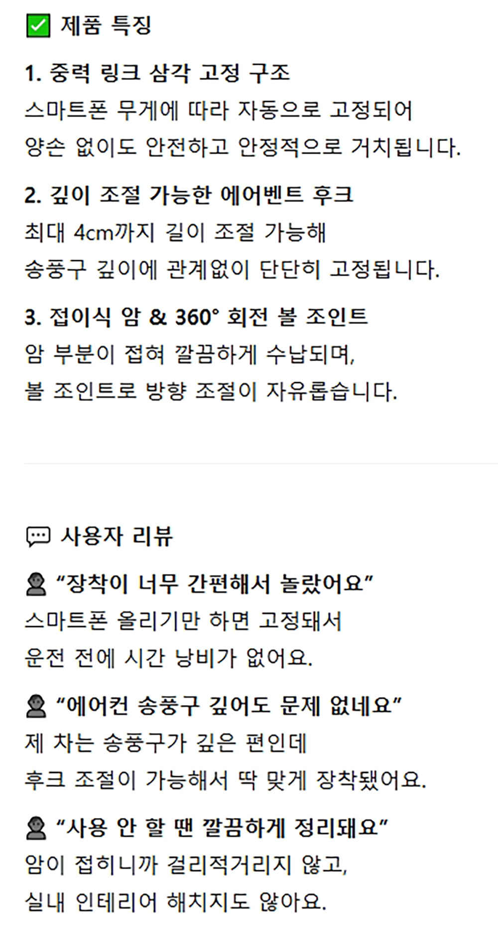 송풍구 깊이에 구애 받지않는 차량용 스마트폰 거치대