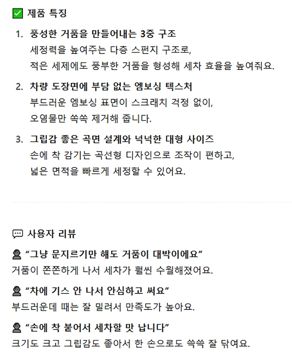 차량 도장면에 스크래치 걱정없이 3중구조 세차스펀지