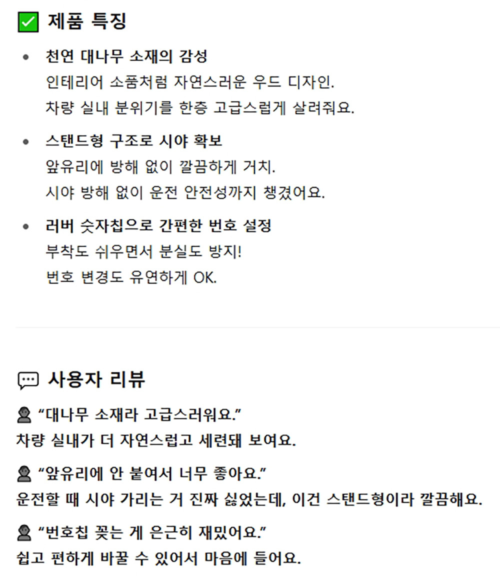 대나무소재 스탠드형구조 자동차용품 감성 주차번호판