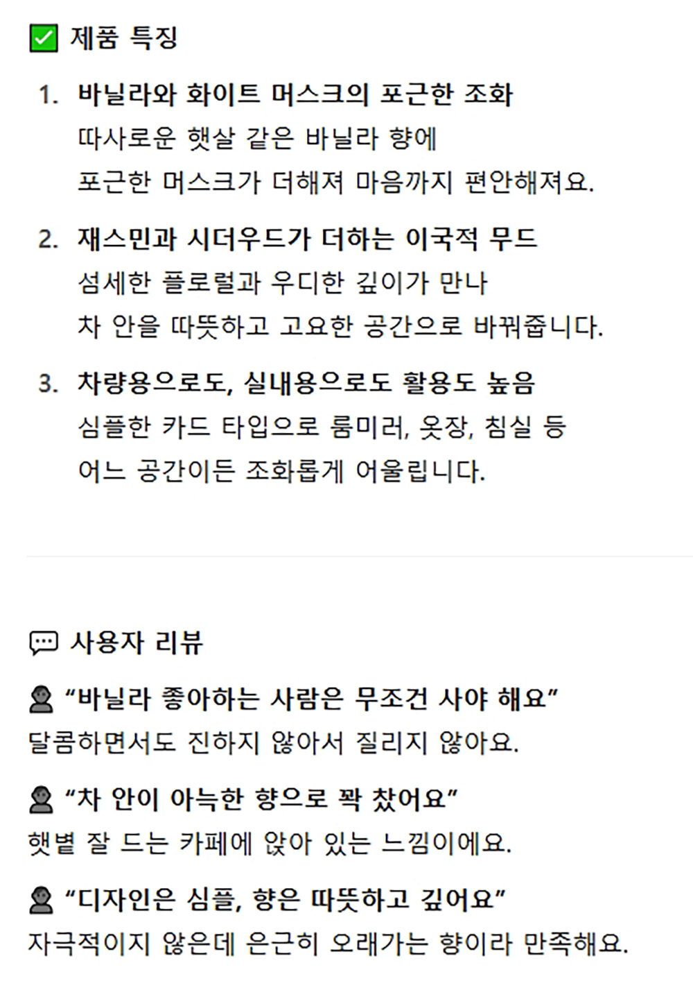 바닐라 화이트머스크 포근한 자동차용품 차량용방향제