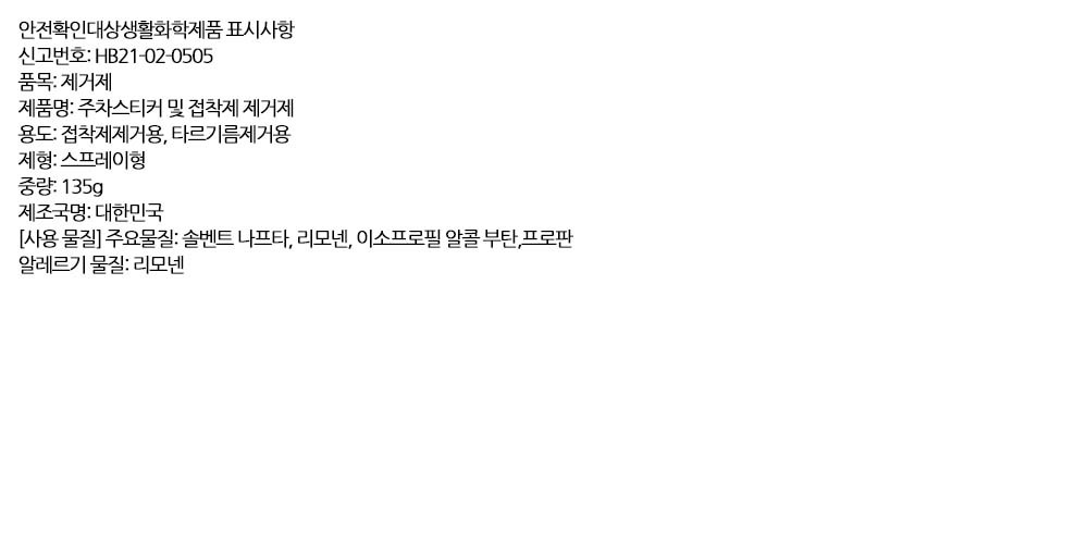 주차스티커 테이프잔여물 껌얼룩 접착제 제거제 200ml