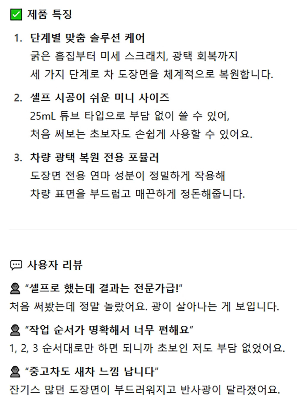 3중 시공으로 스크래치복원 광택충전 자동차 컴파운드
