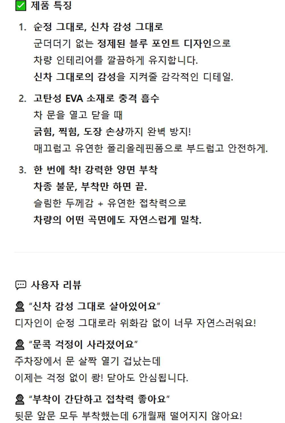 순정디자인 EVA재질 신차감성 그대로 자동차 도어가드