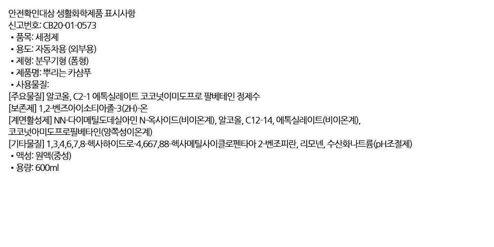 버킷 없이도 뿌리는 폼 세차가능 자동차 카샴푸 600ml