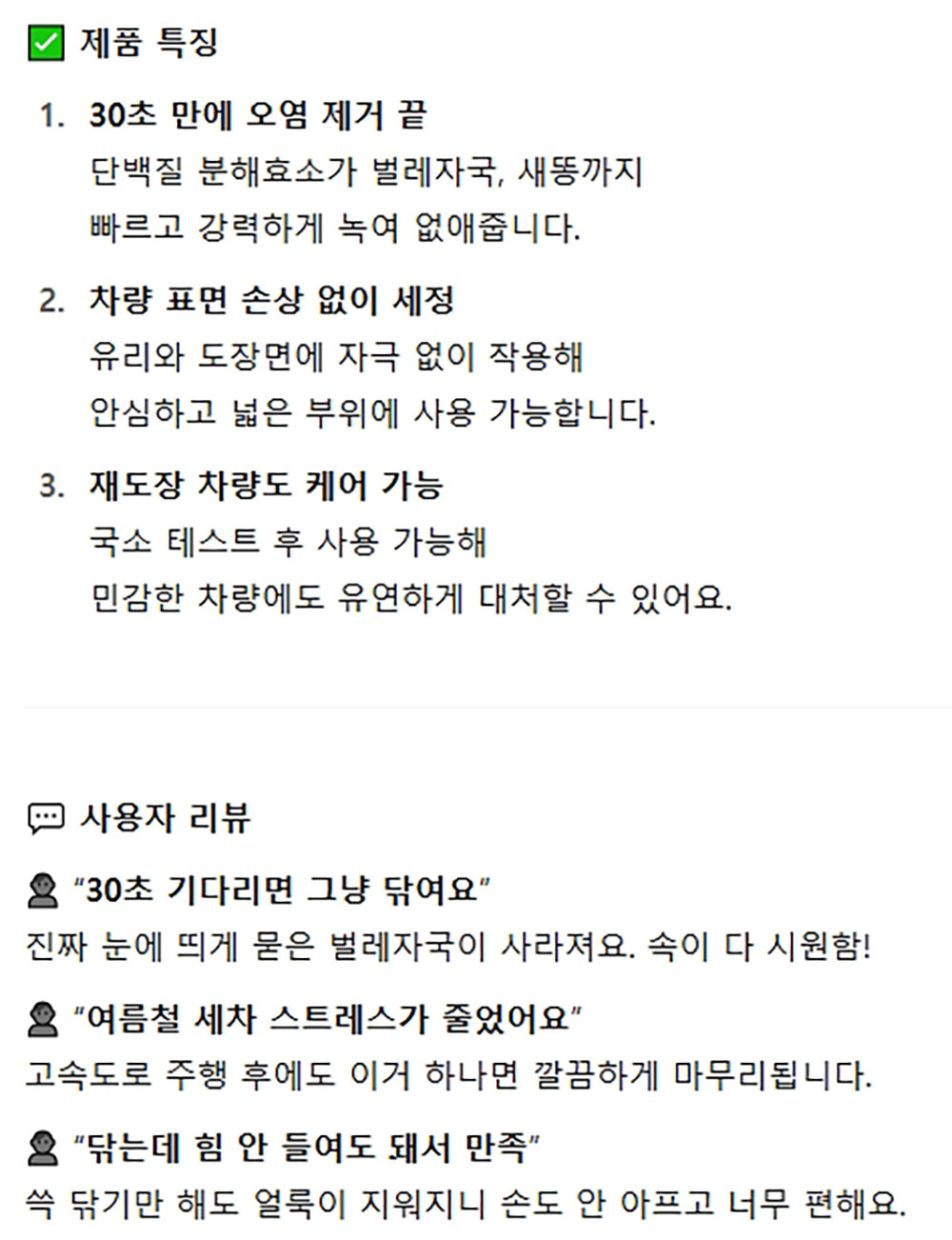강력 오염물 30초 새똥 벌레자국 자동차 크리너 600ml