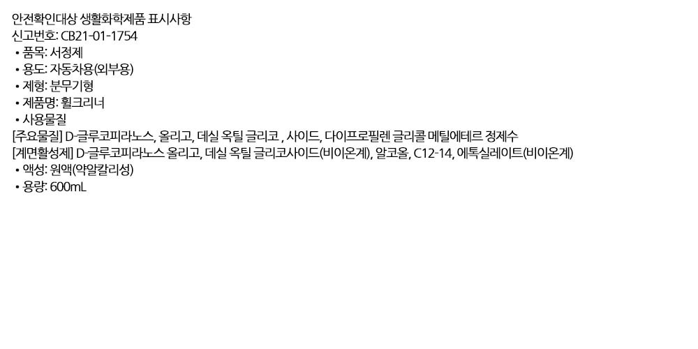 분진 기름때 오염물 자동차 세차용품 휠 크리너 600ml